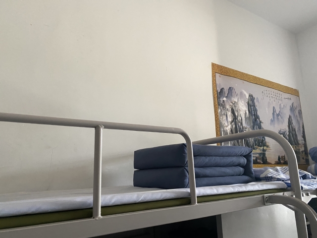 本次宿舍文化节在北区研究生宿舍19号楼拉开帷幕。第一个参与评比的是yl7703永利研究生一年级男生208宿舍,一推开门映入眼帘的就是墙上的一幅山水画和肖寒飞同学摆放整齐的军被,肖寒飞表示自己虽然已经退伍,但仍然保持着之前的良好生活习惯。