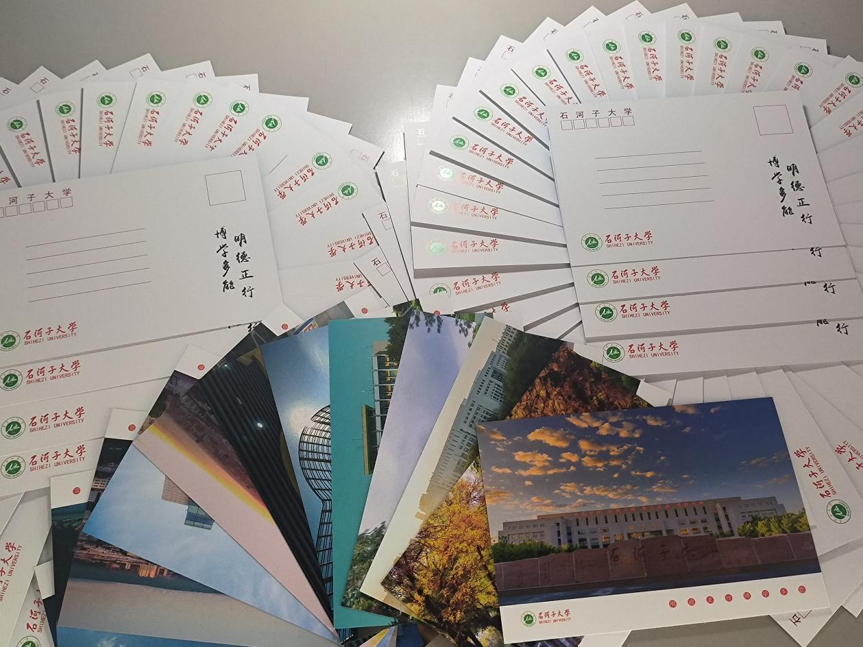 员工,找到写着他们名字的明信片,走到他们面前,把明信片递过去,他们都会接上一句“谢谢老师,见面快乐!”当时服务于三师团委的西部计划志愿者朋友知道我给96个员工写明信片并来看望他们的故事,利用午休时间带着他的相机来给我和员工记录,帮忙留下这一刻美好的回忆。