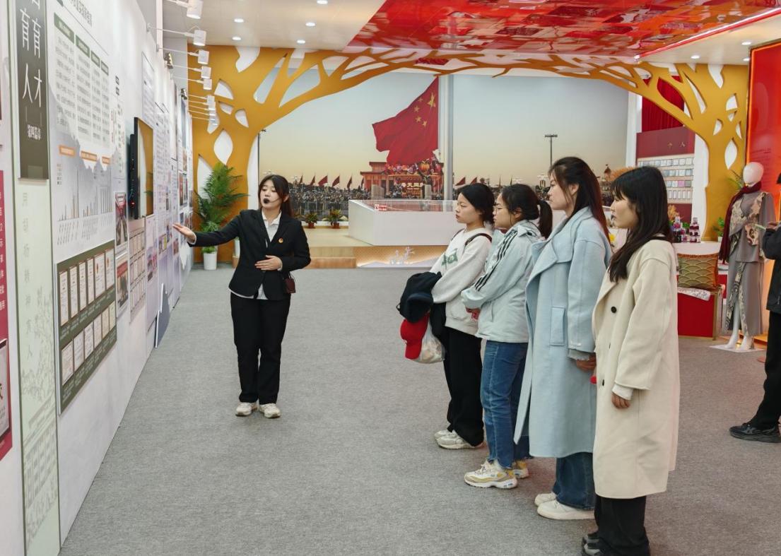 10月27日下午,同学们走进了塔里木大学“这五年主题展览馆”,该展览馆全面总结回顾了塔里木大学全体党员干部和师生员工坚持为党育人、为国育才,坚持用胡杨精神育人、为兴疆固边服务,踔厉奋发、勇毅前行,统筹扩大办学规模和高质量发展,在加快建设兵团特点、南疆特色高水平大学中取得的历史性成就,为忠诚履行新时代兵团维稳戍边职责使命、实现新疆工作总目标作出的重要贡献、发挥的特殊作用。