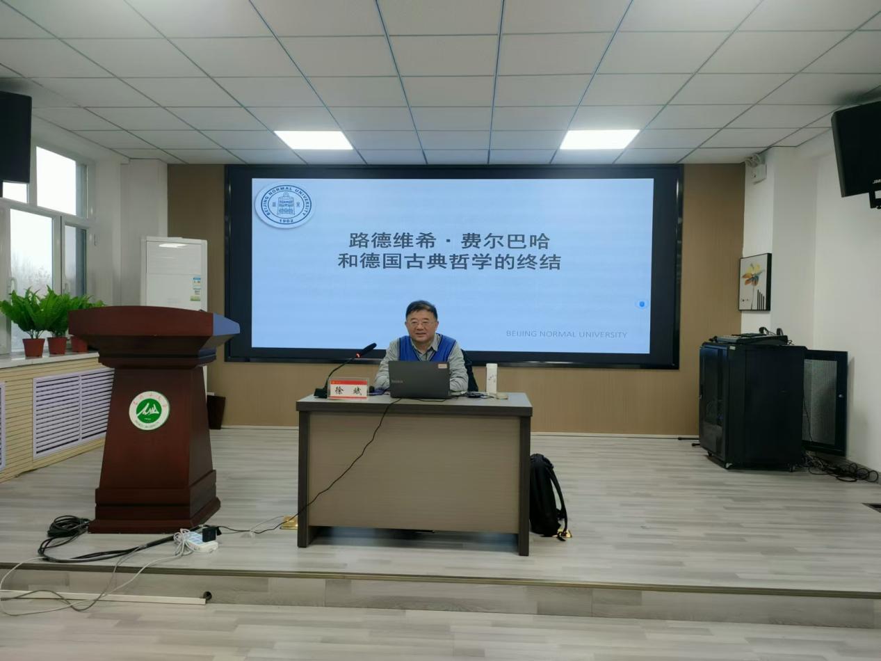 徐斌教授以“研究生要熟读原著,为后续学术研究打牢基础”为开篇,强调了读原著、悟原理的重要性,并以《路德维希·费尔巴哈和德国古典哲学的终结》(《费尔巴哈论》)写作背景为切入点,介绍了恩格斯旨在阐明马克思主义哲学同黑格尔哲学和费尔巴哈哲学之间的关系,并反驳马克思主义哲学是对黑格尔唯心辩证法与费尔巴哈机械唯物论的“简单拼凑”这一观点。