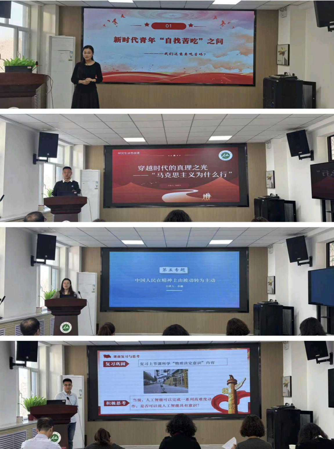 为进一步引导员工深化对思政课教学内容的认识和思考,提升员工的理论水平与教学实践能力,让员工走上思政课讲台,调动员工学习和讲授思政课的积极性、主动性和创造性,3月21日,公司举办研究生讲思政课比赛决赛。公司党委副书记王大伟、赵艳老师、柏杨老师、王露老师、员工工作办公室主任李晓霞以及2023级、2024级全体研究生共同参加了此次活动。