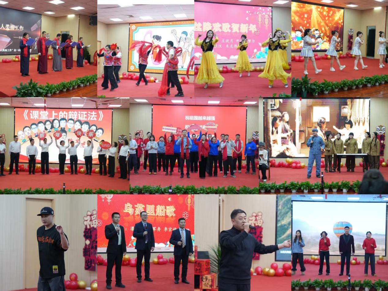 整场晚会由“骏马踏歌贺新元”,“初心筑梦聚同心”,“薪火相传启春期”三个篇章构成,既有精彩纷呈的节目,也有趣味盎然的游戏。晚会伊始,开场民族舞《丝路欢歌贺新年》以绚丽夺目的服饰搭配灵动欢快的舞步,瞬间为整场晚会注入浓厚喜庆氛围,展现了各族员工团结一心、共同新年逐梦的美好;合唱、独唱、情景剧、脱口秀、经典诵读、歌舞串烧、街舞,公司师生自编自演,用不同的形式表达着对2026年新年美好憧憬与殷切期盼。情景剧《沙渠映芳华》通过生动细腻的情景再现,真实还原兵团“塔河五姑娘” 扎根边疆、艰苦奋斗的感人故事,深刻诠释了兵团精神的历史传承与时代价值;群体脱口秀《课堂上的辩证法》创意十足,以幽默诙谐的语言,再现课堂上马克思主义哲学的辩证思维,巧妙融入表演,既富趣味性又彰显思辨活力;让大家感受思政课的魅力。经典诵读《青年在选择职业时的考虑(节选)》展现了马克思年轻时的崇高理想和使命感,闪耀着真理的光芒,增强了员工对职业本质的理解,对员工提供精神滋养。在节目间隔的互动环节中,《马年猜猜乐》《薪火相传》传声筒游戏和幸运大抽奖活动气氛热烈,师生们踊跃参与,欢声笑语不断。晚会最后在歌舞《燃冬舞颂,声迎曙光》中达到高潮,激昂飞扬的旋律、动感十足的演绎,展现了师生凝心聚力、携手奋进公司高质量发展的坚定信念。