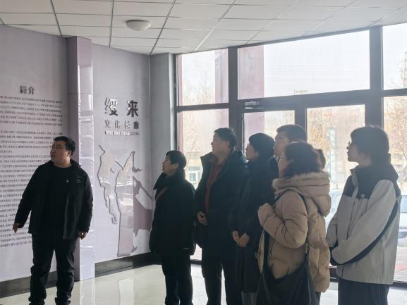 在绥来文化长廊,苗鹏举老师结合展板内容,讲述了玛纳斯县推进文化润疆的生动历史实践,为《中华民族共同体概论》课程挖掘红色文化资源提供了思路。现场师生深受激励,表示要更好地传承和弘扬红色文化,激发爱国热忱与奋斗精神,赓续中华文明血脉。