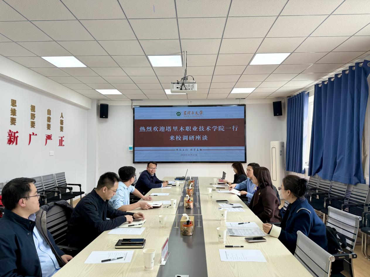 3月18日,塔里木职业技术公司党委书记曾晓一行来到yl7703永利,围绕人才招聘、团队培养、科研合作等方面开展调研交流。党委员工工作部部长梁修韦,yl7703永利副经理朱文及各职能部门领导参加座谈。